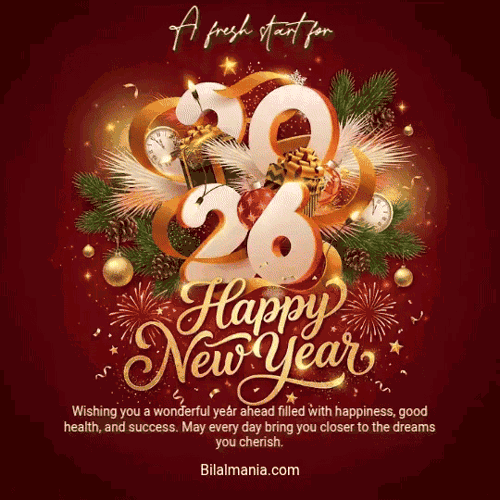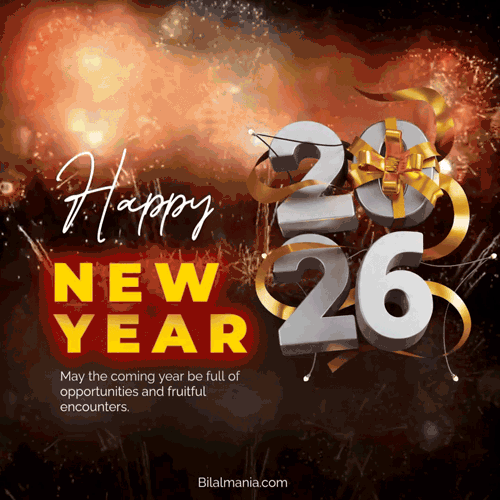 Download for free from Bilalmania.com and get our top selection of Happy New Year 2026 GIFs, images, and heartfelt wishes to share on WhatsApp, Facebook, and other platforms. As New Year’s Day 2026 quickly approaches, it’s that perfect time to reflect on the past year and welcome positive changes for the future. Spread joy, inspire your loved ones, and celebrate the fresh start with beautiful greetings that capture the spirit of hope and happiness for a brighter year ahead. Let Bilalmania.com be your source for uplifting New Year wishes and unique images to share the excitement with everyone!